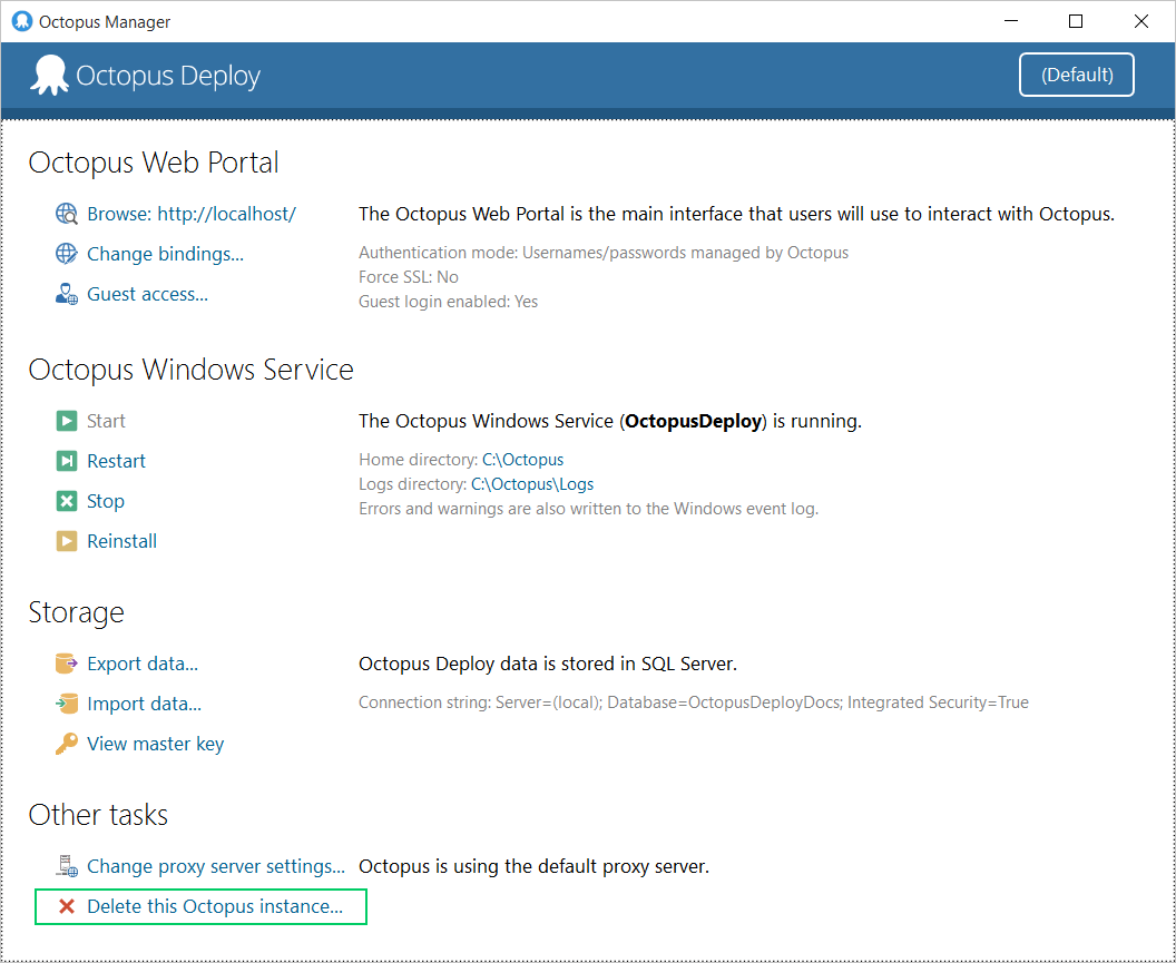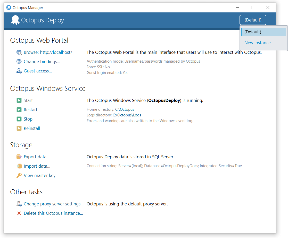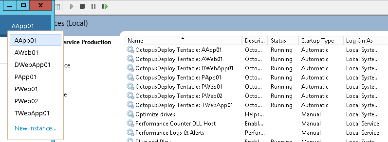 - When upgrading the Octopus Server, each instance of the Windows service should be stopped first by hand; the default installation process sometimes seems to ignore non-default instances and won’t stop them before replacing files, nor restart them afterwards.