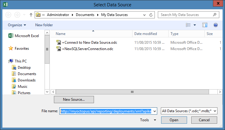 In the Select Data Source menu, instead of selecting a file, enter your reporting URL, then Open. To get your reporting URL, see the section below on Using the XML Feed.