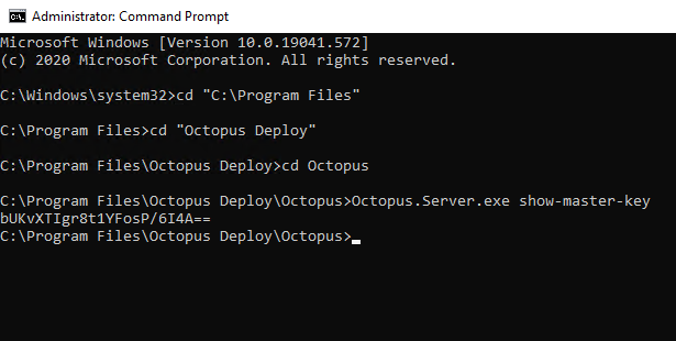 An alternative means of accessing the Master Key is to run the Octopus.Server.exe show-master-key from the command line. Please note: you will need to be running as an administrator to do that.