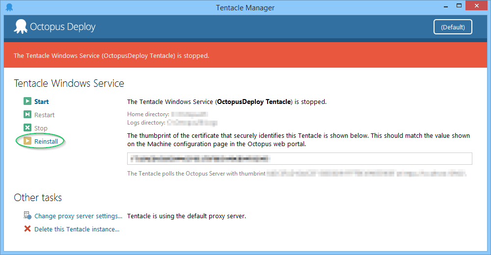 - The MSI upgraded the Tentacle, but the Windows Service is pointing at an old version.