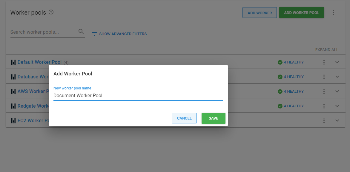 In the modal dialog, add the name of the worker pool you wish to add:
