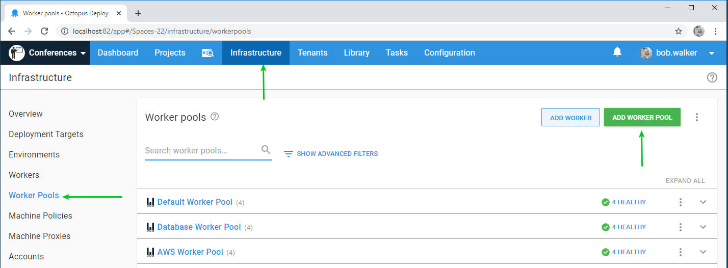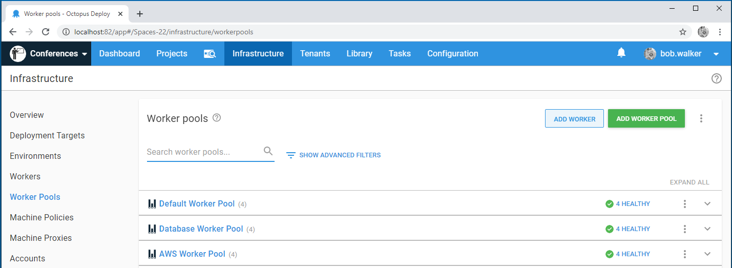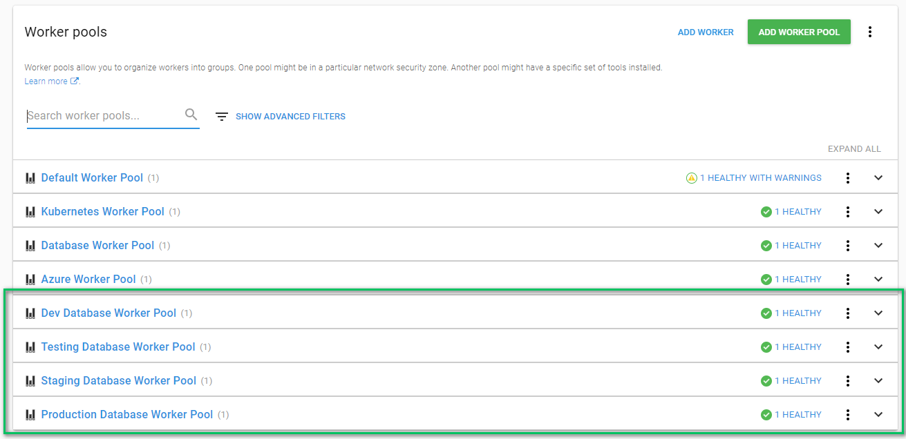 If you are using a version of Octopus Deploy prior to 2020.1, the process is slightly different. To start, create a dedicated Worker pool for each environment: