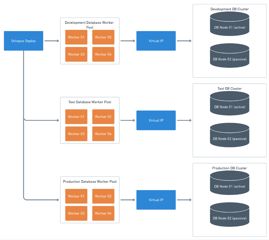 - The database deployment tools might need to run on Linux while Octopus Deploy is running on Windows.