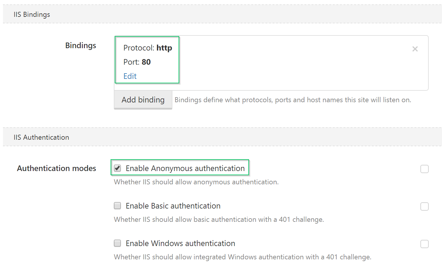 - Configure the IIS Web Site you want Octopus to set up on your behalf.