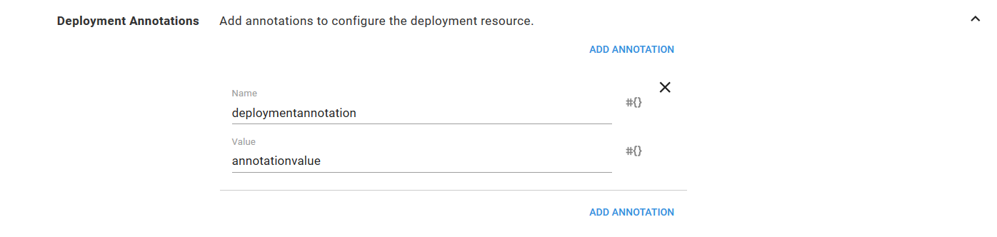 When using the blue/green deployment strategy, the name entered in this field will be used as the base for the Deployment resource name. The Octopus deployment ID will then be appended to the name to ensure the blue and green Deployment resources have unique names.