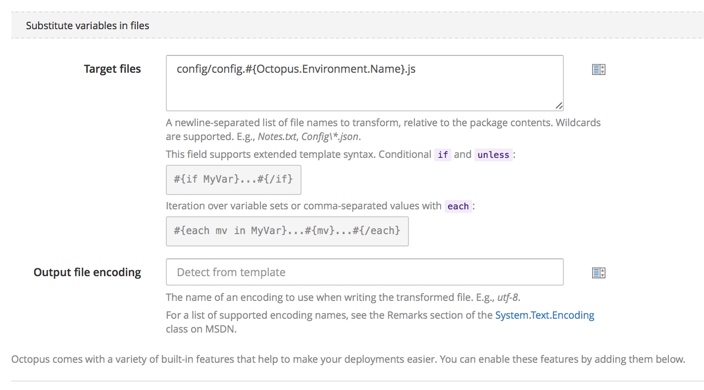 config/config.#{Octopus.Environment.Name}.jsas the substitution target file.