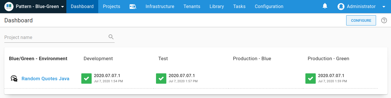 When deploying, you can then choose which environment to deploy to - either blue or green. The dashboard will show which release is in each environment.