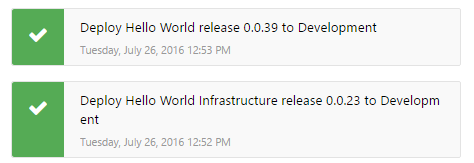 Imagine a developer makes a change to Hello World and would like to deploy it. At this stage, they would need to create and deploy a release of the Hello World Infrastructure project, wait for the new infrastructure to become available and then create and deploy a release of Hello World. It is possible but clunky. Also, someone would be required to remove all of the orphaned deployment targets left in Octopus when new Tentacles are provisioned.