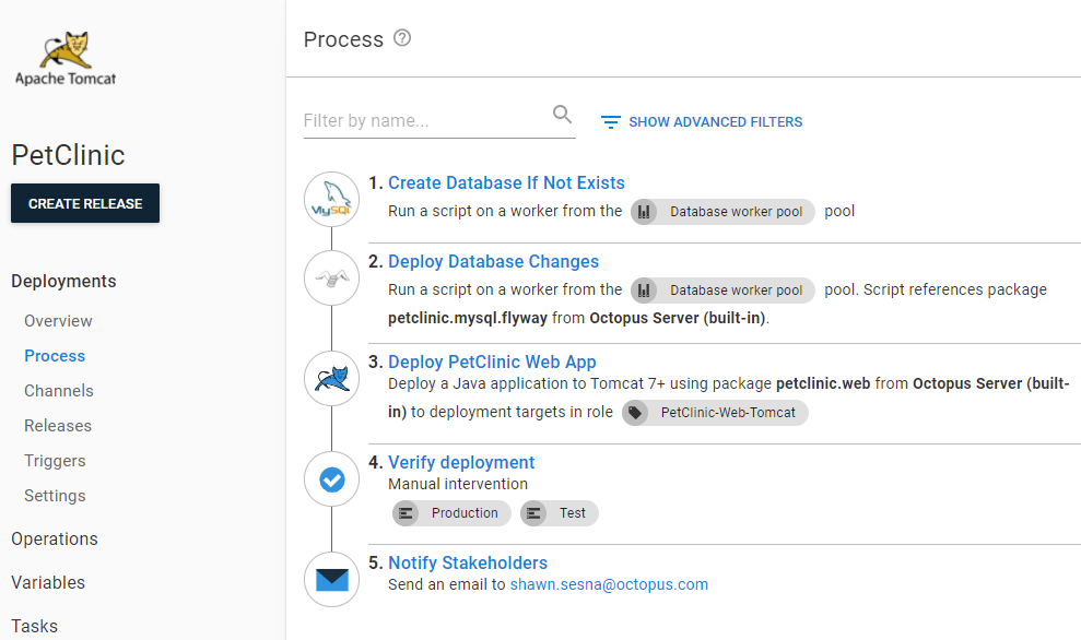 For this guide, we’ll start with an existing deployment process for deploying the PetClinic application: