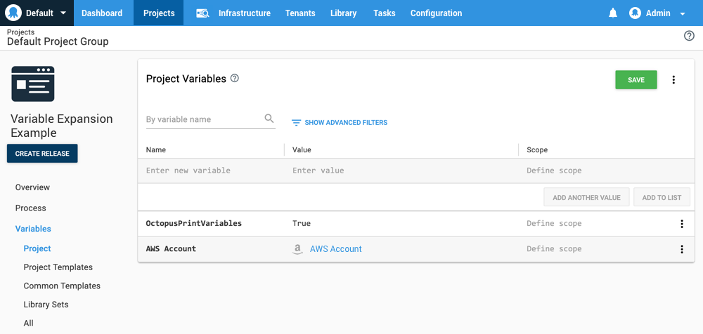 First, add the AWS Account as a variable. In the screenshot below, the account has been assigned to the AWS Account variable.