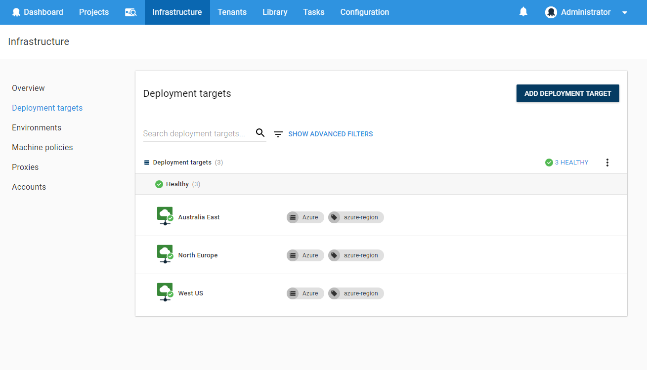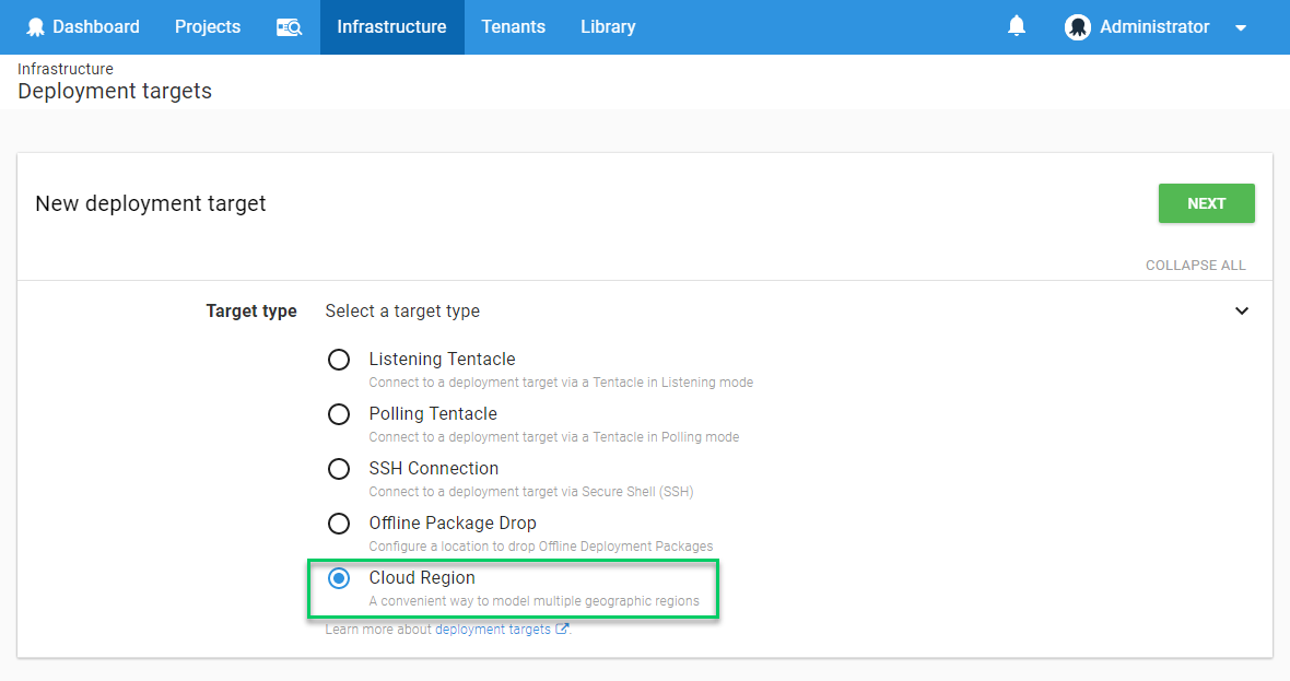 - Now you can see the cloud regions in the Infrastructure ➜ Deployment Targets page, just like the other deployment targets.