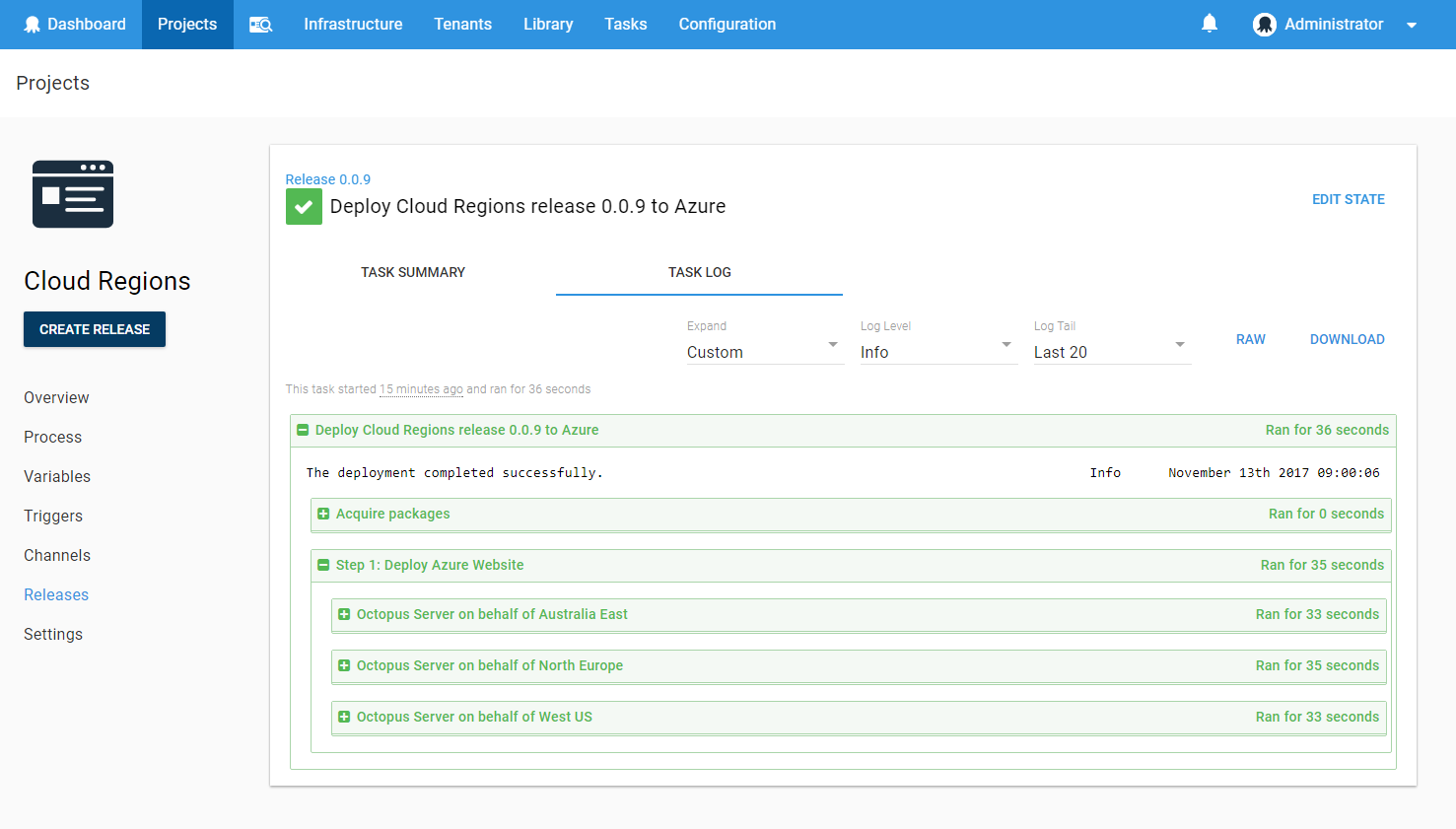 Now when you deploy OctoFX you can create a rolling deployment targeting these regions one at a time, or in parallel.