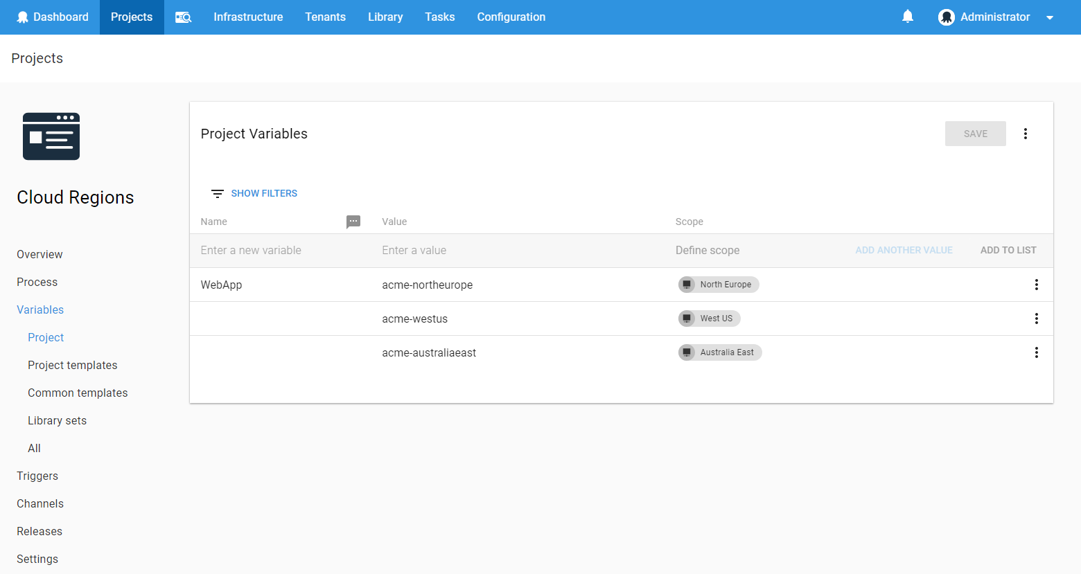 - To make use of your cloud regions you should scope region-specific variables to them appropriately.
