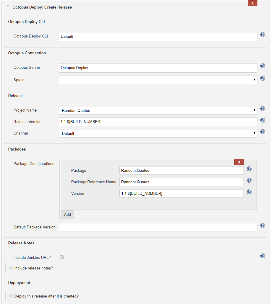 When this job runs, Jenkins will now not only build and publish packages, it will also create a release in Octopus Deploy.