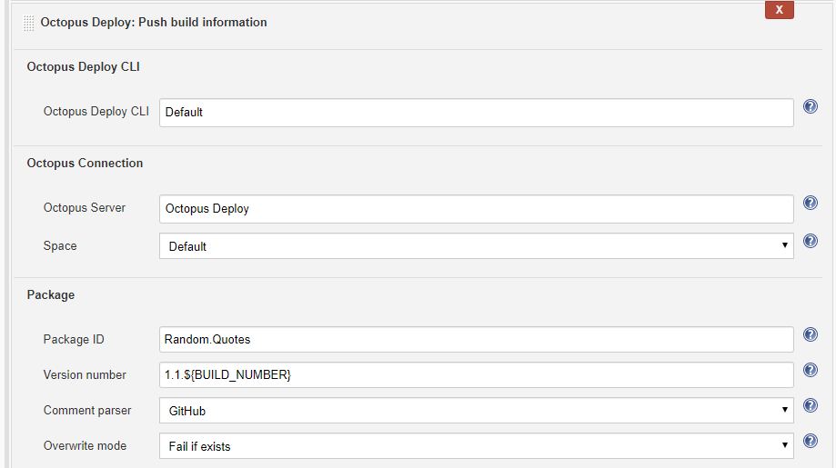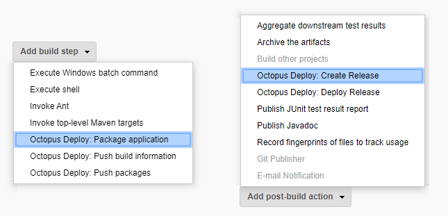 The Octopus Jenkins plugin comes with these Octopus Build Steps:
