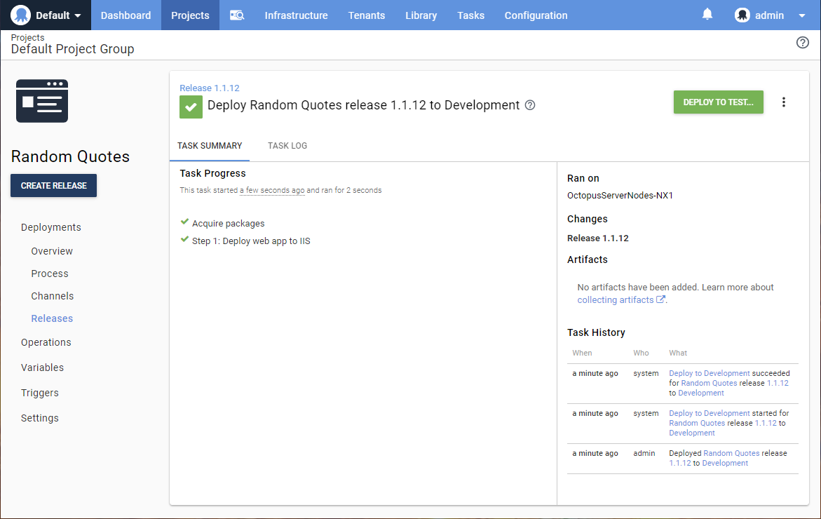 - Octopus Deploy: Deploy Release Deploy an existing release to a new environment.