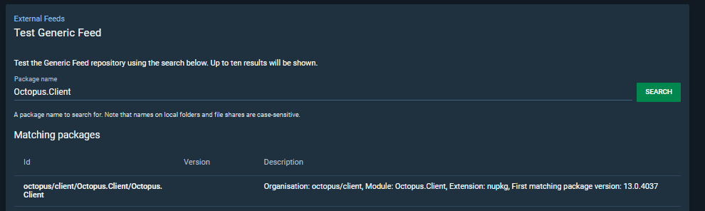 Artifactory generic feeds accommodate files of any type without requiring a specific file name structure. To handle this Artifactory supports custom layouts. Custom layouts produce a regex expression that the file path and name must match, enabling Artifactory to extract the file type, version and module. This customizable package structure does not match Octopus’s expected package versioning conventions used in other feeds.