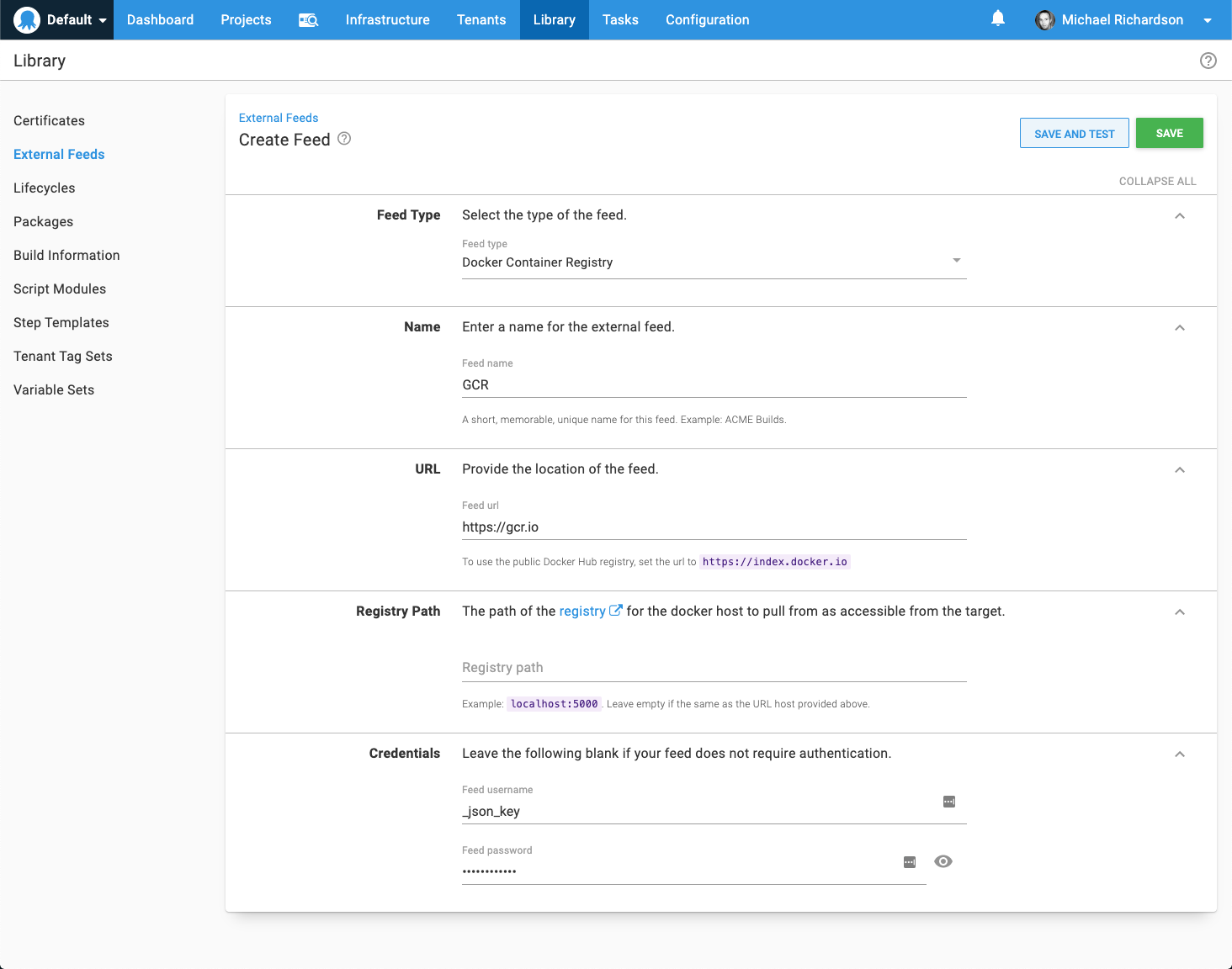 - In Octopus go to Library ➜ External Feeds and add a new feed with the following properties