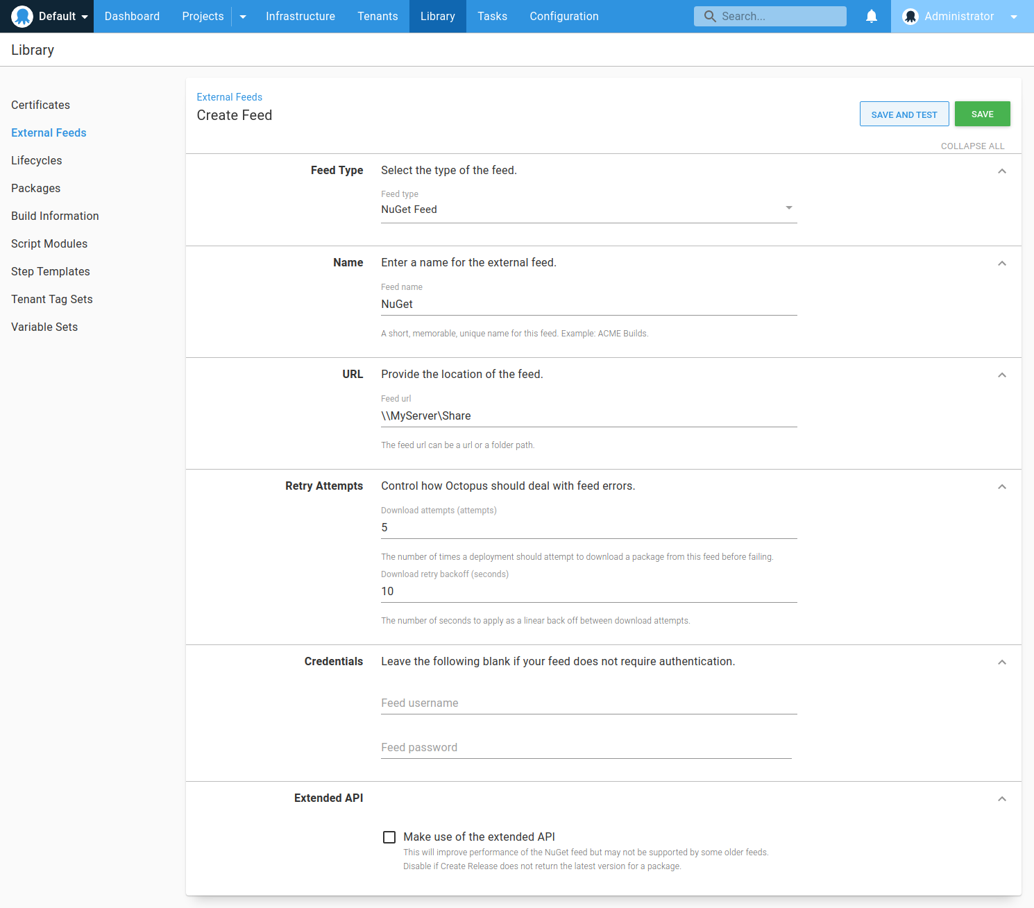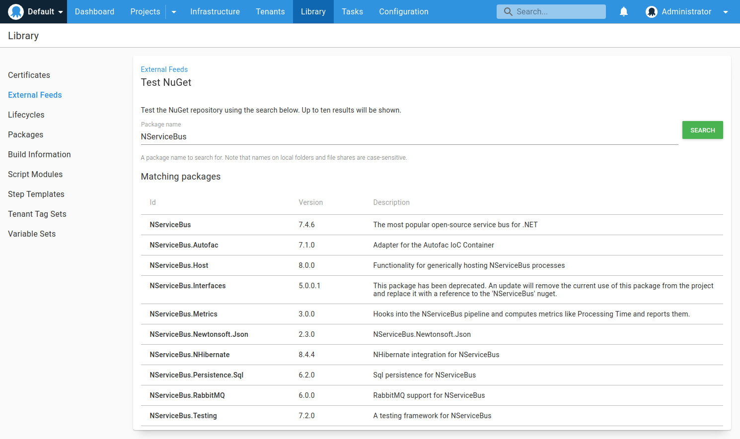 If you’re using an external NuGet feed, you can register it with Octopus and use them as part of your deployments. Go to Library ➜ External feeds.