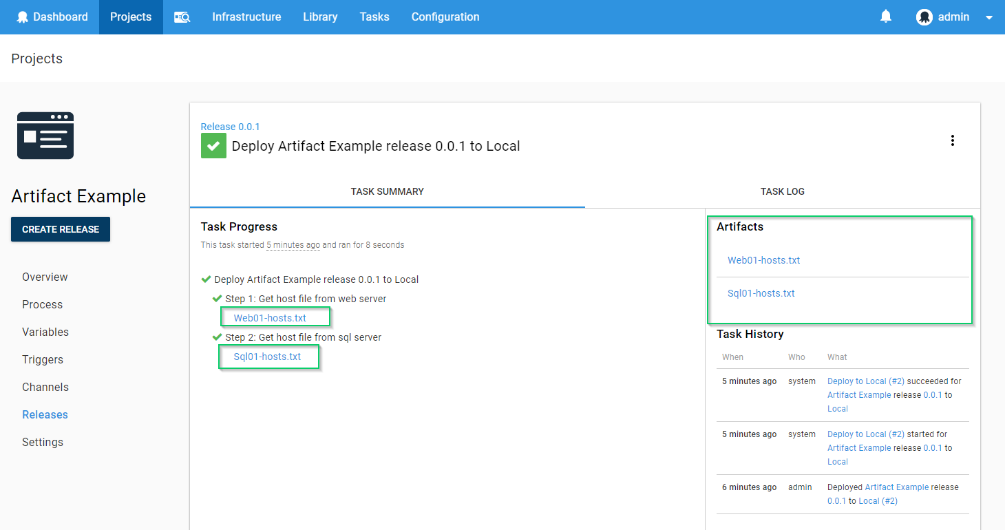 Artifacts in Octopus provide a convenient way to collect files from remote machines and copy them to the Octopus Server. Examples of where artifacts may be useful are: