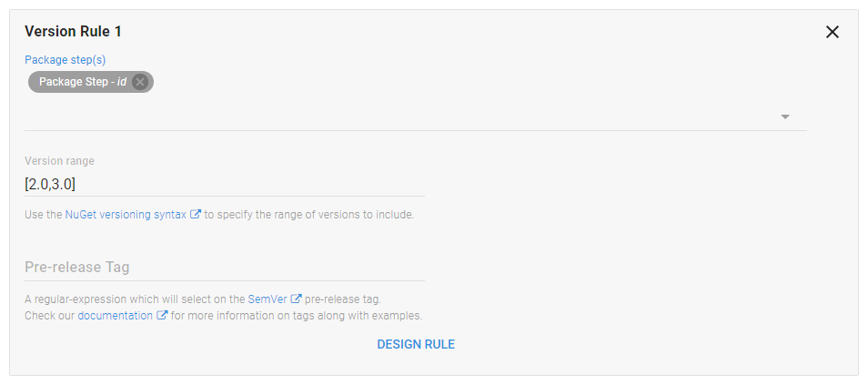 - Select the package step(s) (and as such the packages) the version rule will be applied to.