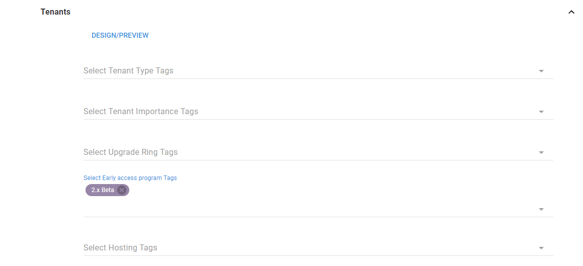 You can control which Releases will be deployed to certain Tenants using Channels. In this example, Releases in this Channel will only be deployed to Tenants tagged with Early access program/2.x Beta.
