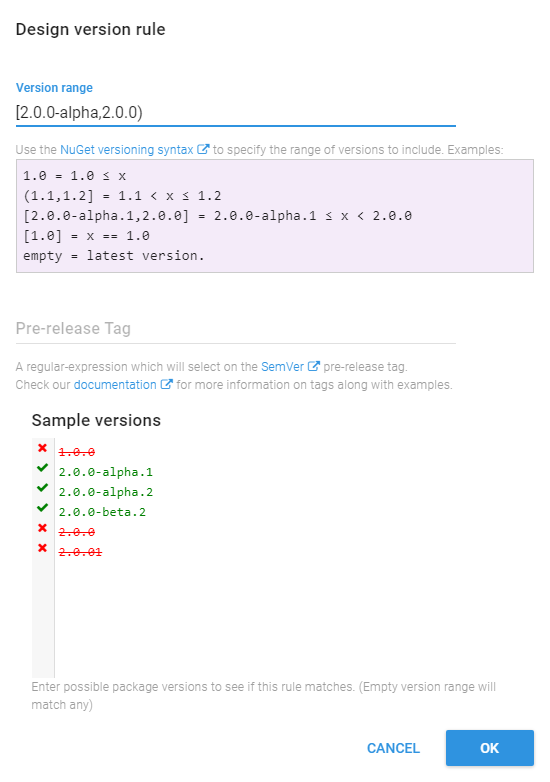 Version Rules will work best when you follow Semantic Versioning (SemVer 2.0.0) for your versioning strategy.