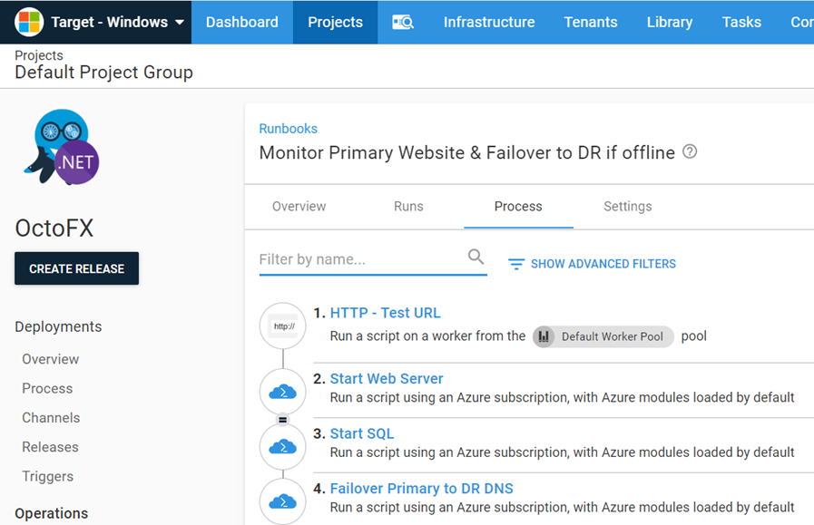 - To create a runbook, navigate to Project ➜ Operations ➜ Runbooks ➜ Add Runbook.