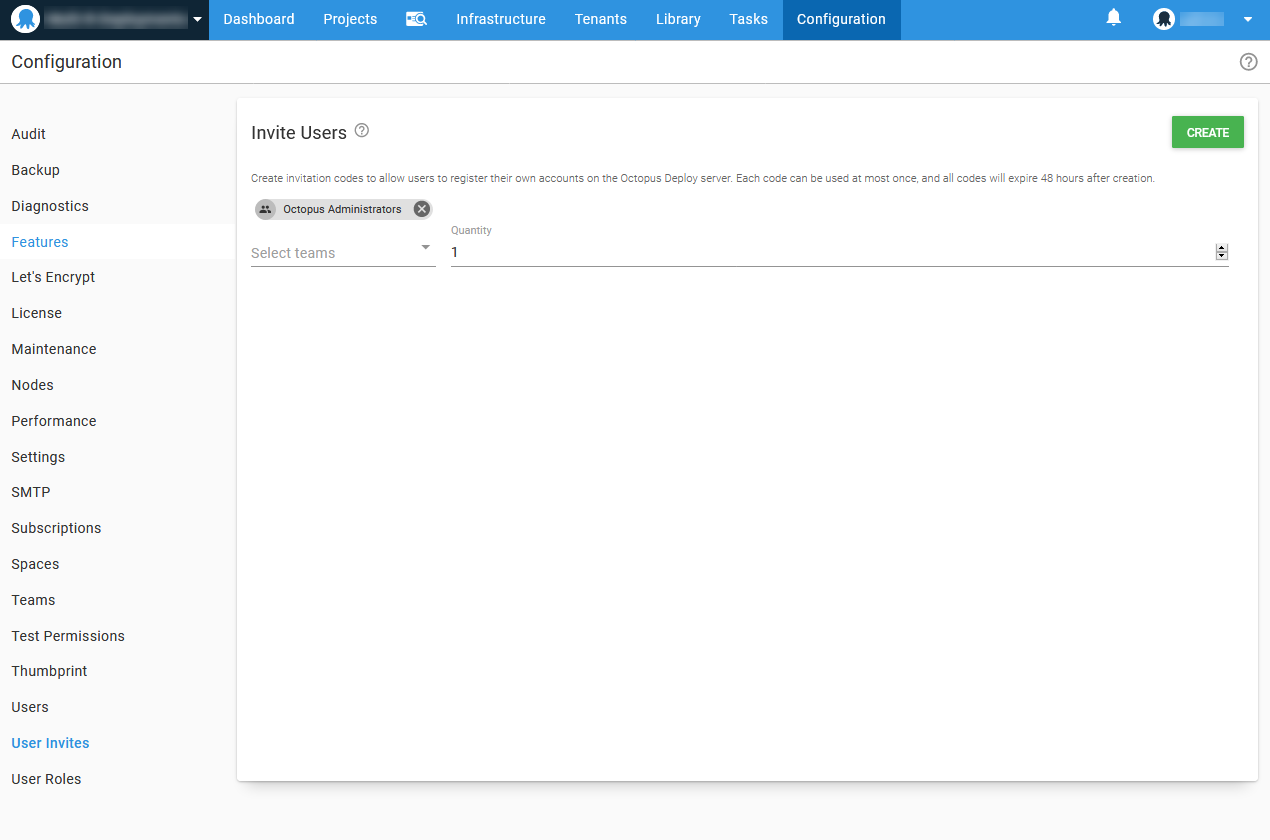 In the example above, we are generating codes for the Octopus Administrators team, so anyone who uses one of the codes will automatically join that team when they have completed registration.