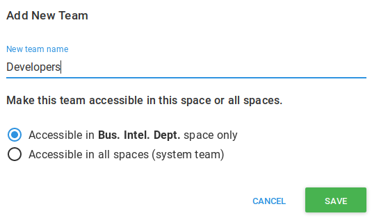 For this example, we’ll choose this team to only be visible in the space we are currently in.