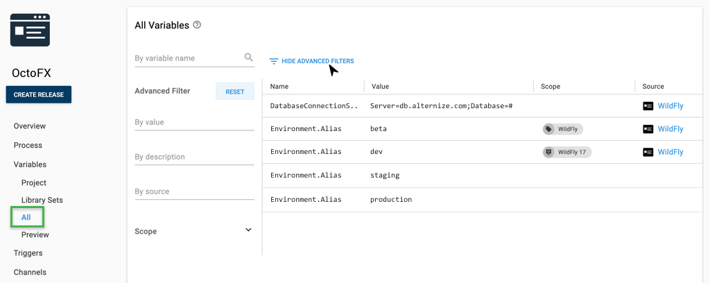 - Investigate the variables from all possible sources for the project including the project itself, library variable sets, and tenants.