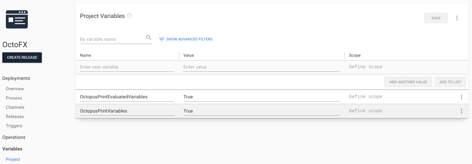20:30:45 Warning | OctopusPrintVariables is enabled. This should only be used for debugging problems with variables, and then disabled again for normal deployments.