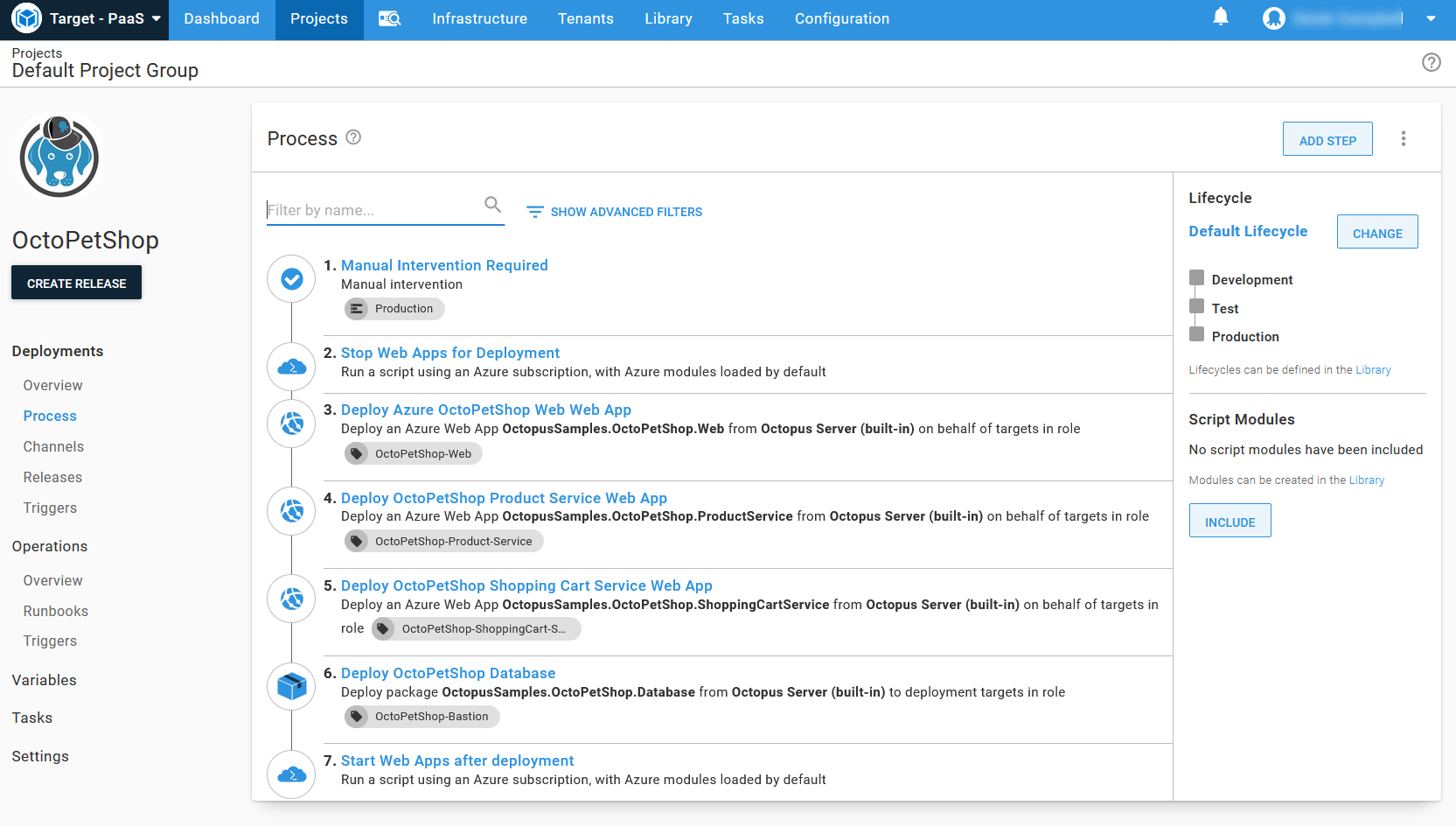 - Navigate to the deployment process screen.