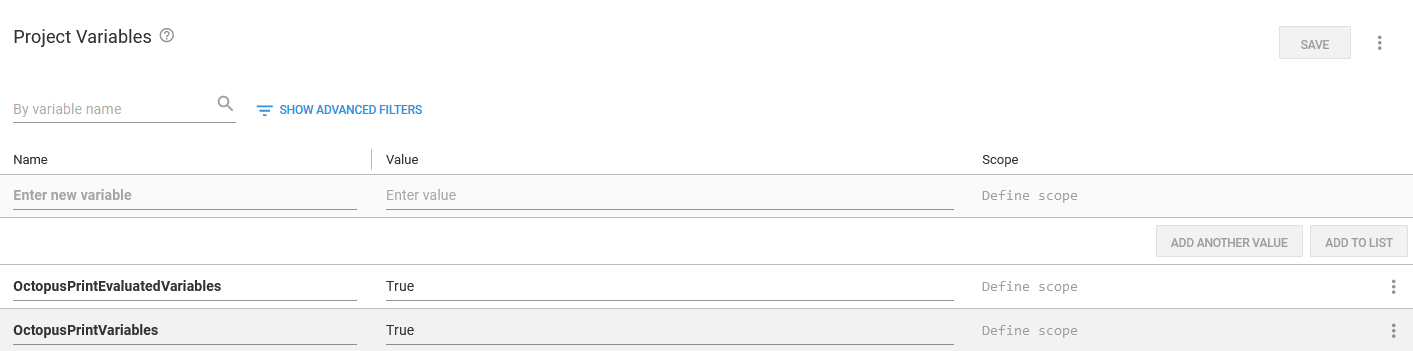 OctopusPrintVariablesOctopusPrintEvaluatedVariables