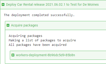 Because the tenants for the Car Rental application have been assigned their appropriate Azure Region tag, Octopus Deploy automatically selects the correct worker when performing a deployment to the tenant. The De Moines tenant is assigned the Central US Azure Region tag, below is the worker selected during the deployment for De Moines and the members of the Azure Cental US worker pool