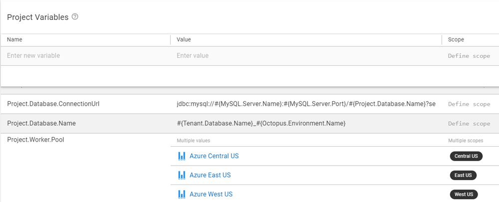 Region specific worker pools are only half of the equation, the deployment still needs to be configured to select the correct pool based on the tenant being deployed to. To solve this issue, we’ll utilize a worker pool variable. A worker pool variable is a type of variable that you can add to your project. Just like other variables, these variables can be scoped to tenant tags