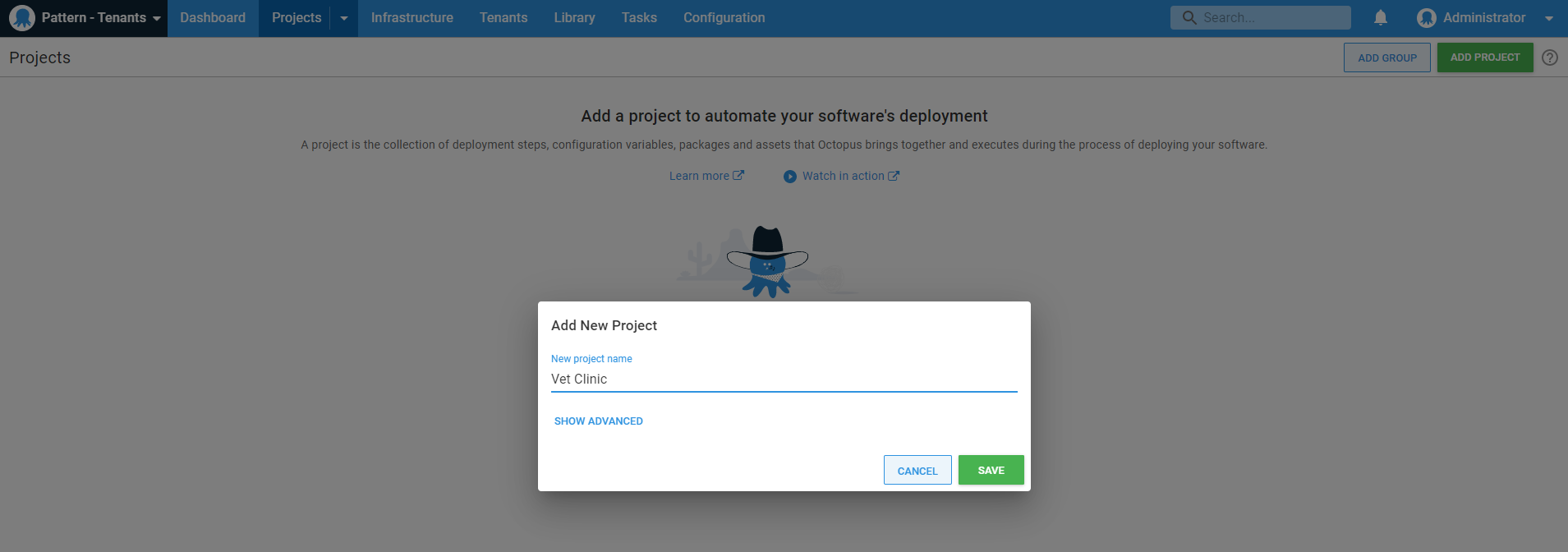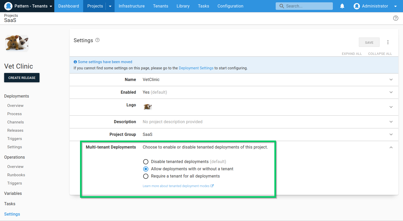 Next, you need to make sure the project has tenanted deployments enabled