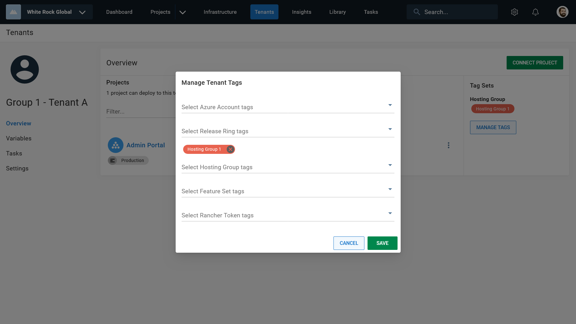 This tag will make it easy to choose to deploy to all tenants in a group and also map those tenants to the correct infrastructure.