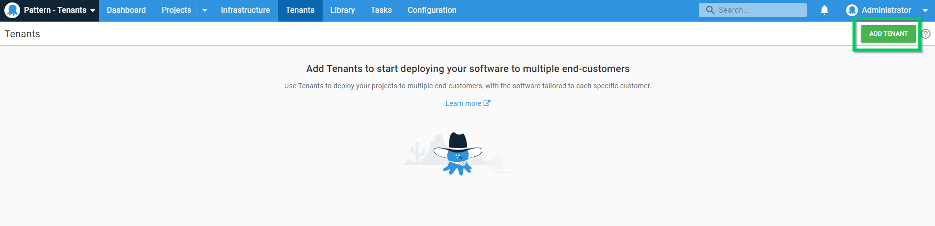 Now that you’ve created a tenant, you can enable tenanted deployments and then connect the tenant to a project.