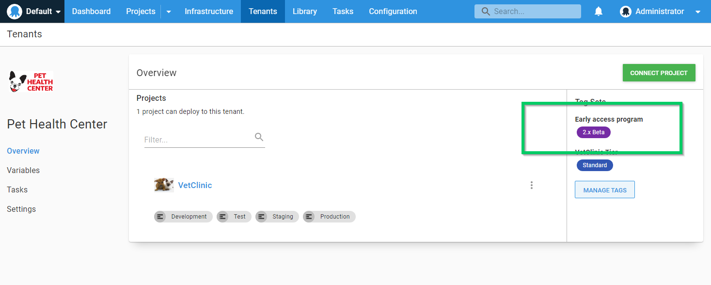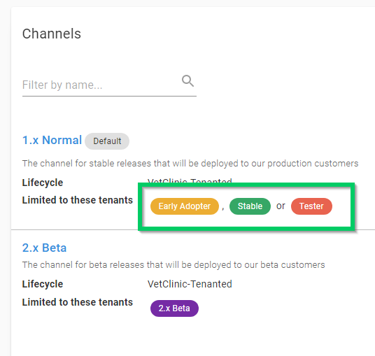 Quite often, you want to involve certain customers in testing early releases of major upgrades. By using a combination of channels and tenant tags you can implement an opt-in early access program using tenants, making sure the beta releases are only deployed to the correct tenants and environments.