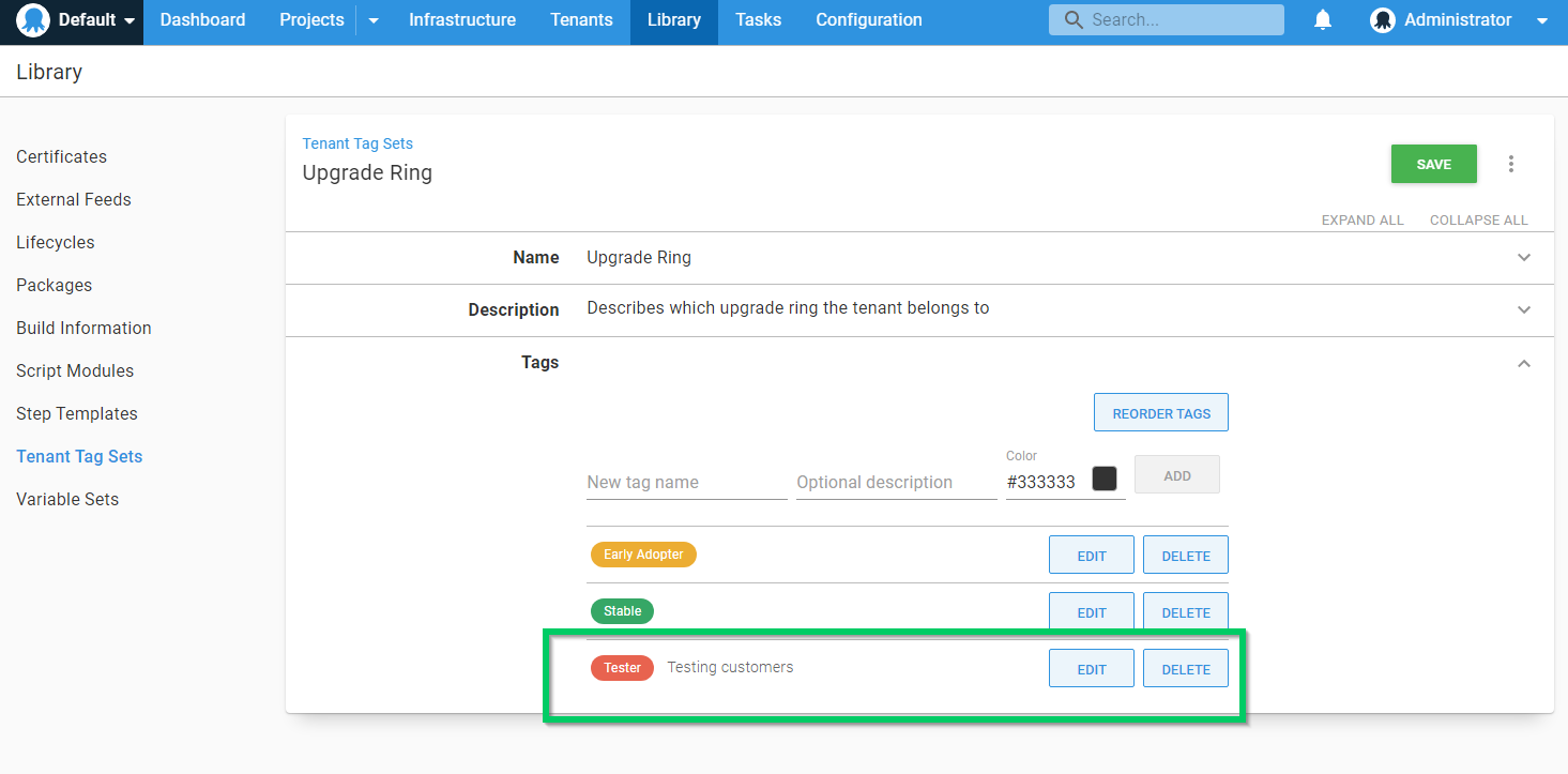 Add a new tag called Tester to a new or existing tenant tag set.