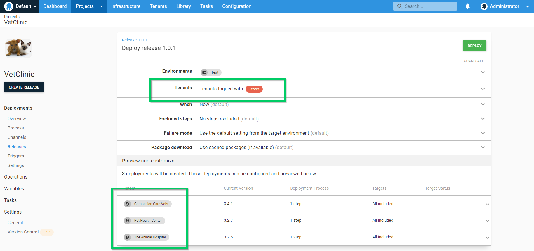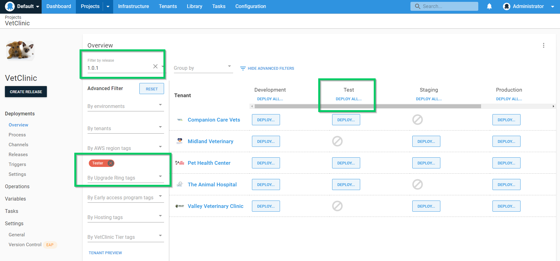 Now it’s time to deploy using tenant tags as a way to select multiple tenants easily. In this example, we will deploy version 1.0.1 to all of the tenants tagged with Tester who are connected to the Test environment. You can use multiple tags and complex tag queries to achieve other interesting scenarios.