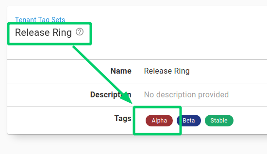 - Release Ring (Alpha, Beta, Stable): concerned with when the tenant’s applications are upgraded in relationship to other tenants - read more about this in our guide.